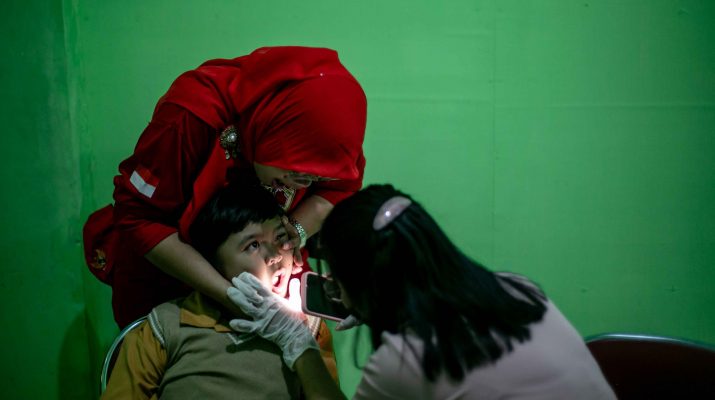 Petugas kesehatan puskesmas memeriksa gigi siswa pada kegiatan Cek Kesehatan Gratis (CKG) di SLB Negeri Cangakan, Karanganyar, Jawa Tengah, Jumat (22/8/2025). Cek kesehatan gratis di Sekolah Luar Biasa (SLB) tersebut Kepada deteksi Awal Elemen risiko kesehatan dan penyakit pada anak berkebutuhan Spesifik sekaligus upaya pemerintah menjangkau akses layanan kesehatan bagi pelajar yang merata dan inklusif. ANTARA FOTO/Mohammad Ayudha/Ppj
