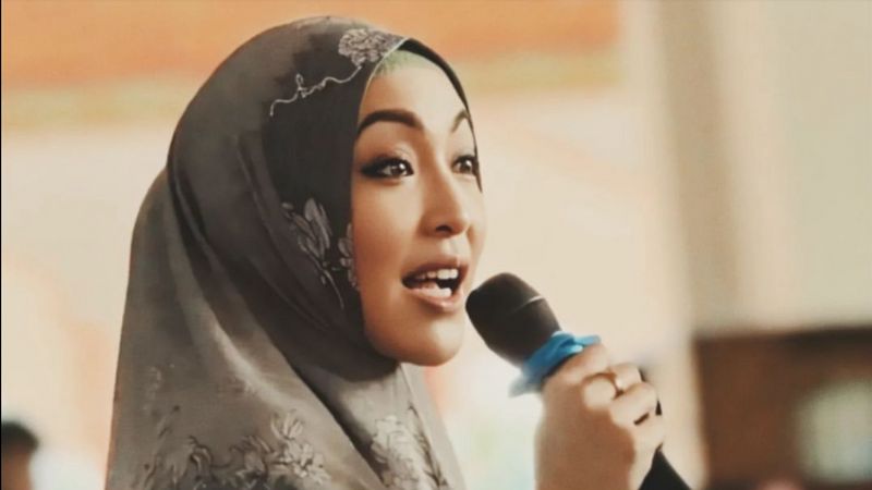Lewat Instagram pribadinya, istri mendiang Adjie Massaid ini mengunggah video saat ceramah. Ia mengenakan hijab bermotif dan duduk di depan meja.