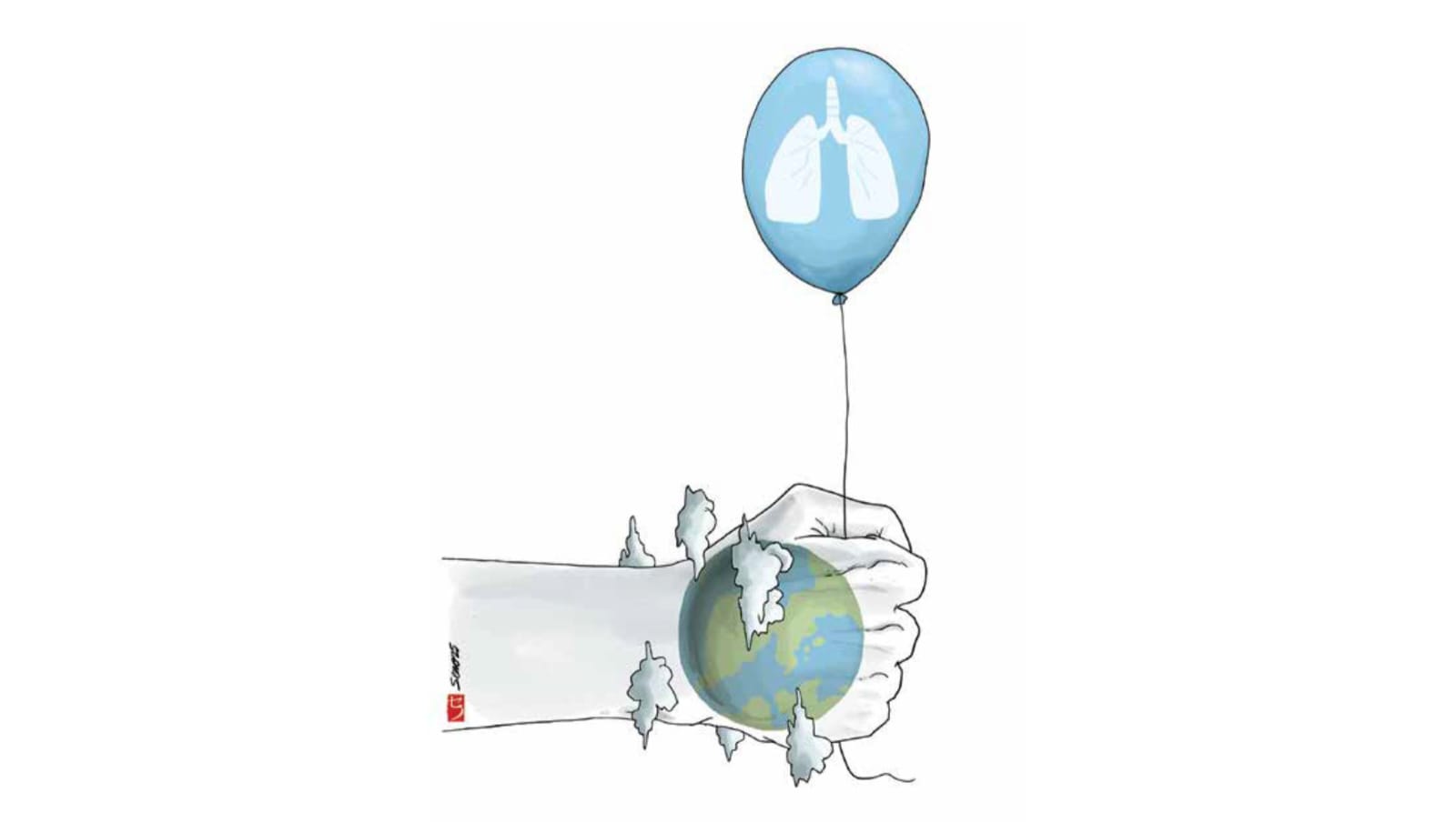 Kelima, mengantisipasi perubahan iklim. Laju pemanasan Dunia diketahui telah meningkat selama 50 tahun terakhir. Akibat perubahan iklim pada lingkungan meliputi cuaca ekstrem seperti gelombang panas, banjir, badai, kekeringan dan kebakaran hutan. Peningkatan suhu akan memengaruhi kualitas udara dan meningkatkan berbagai oksida reaktif yang memperburuk kesehatan paru.