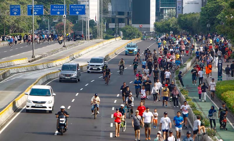 Penduduk memenuhi Jalan Sudirman-Thamrin Begitu melakukan aktivitas olahraga di Jakarta, Minggu (24/11/2024). Meski car free day (CFD) ditiadakan karena masa tenang menjelang Pilkada, Tetapi Penduduk tetap melakukan aktivitas olahraga, sehingga harus berbagi jalan dengan pengendara bermotor. MI/Usman Iskandar/sas