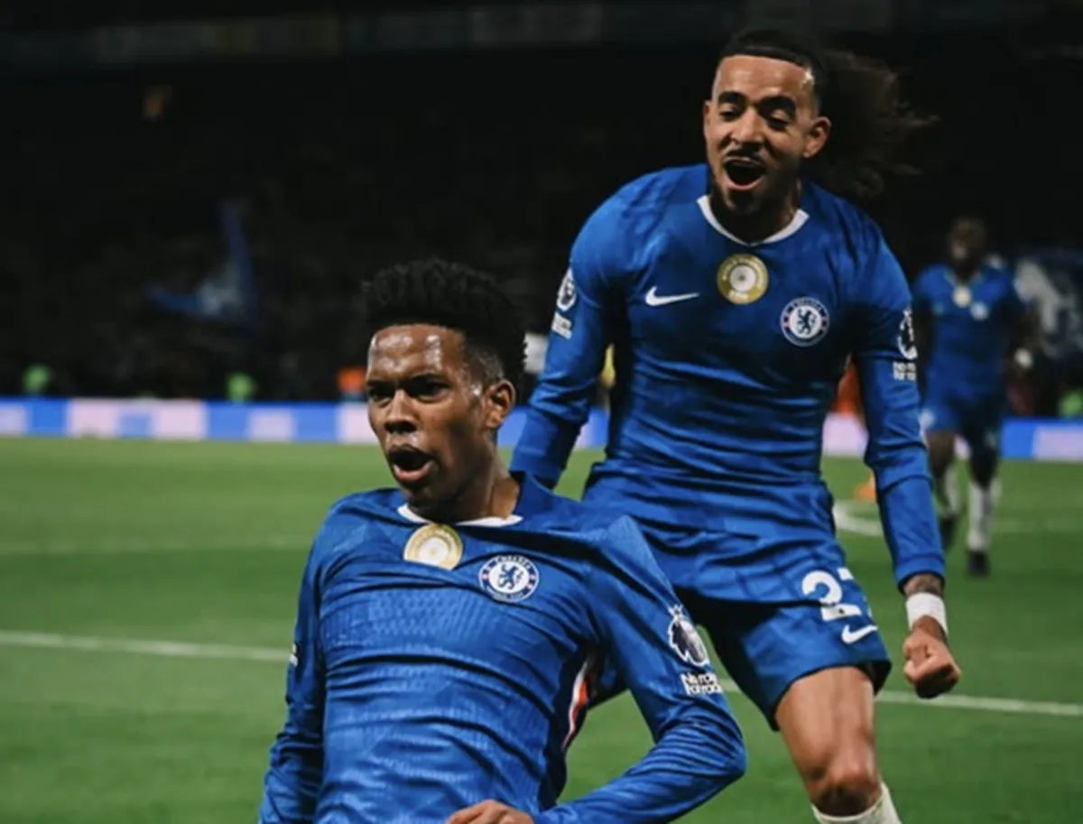 Liputanindo.id – Penyerang Chelsea, Estevao (depan), melakukan selebrasi seusai menjebol gawang Liverpool pada lanjutan Perserikatan Inggris 2025/2026 di Stamford Bridge, Sabtu (4/10/2025) malam WIB. Chelsea mengalahkan Liverpool dengan skor 2-1. (Instagram/chelseafc)