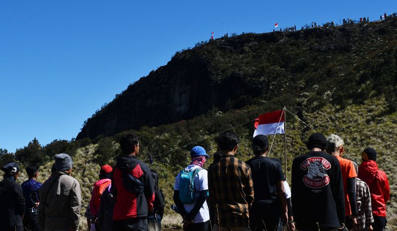 PENDAKIAN ke Gunung Ciremai, Jawa Barat, mulai ramai jelang peringatan hari ulang tahun HUT ke-79 Kemerdekaan Republik Indonesia. Para pendaki bertangan untuk nantinya melakukan upacara di puncak Gunung Ciremai.