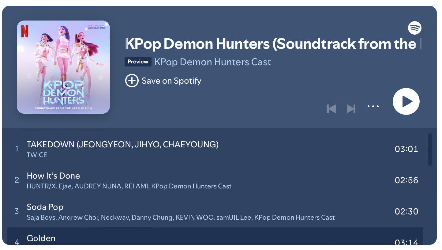 Berikut adalah daftar Tembang-Tembang KPop Demon Hunters: