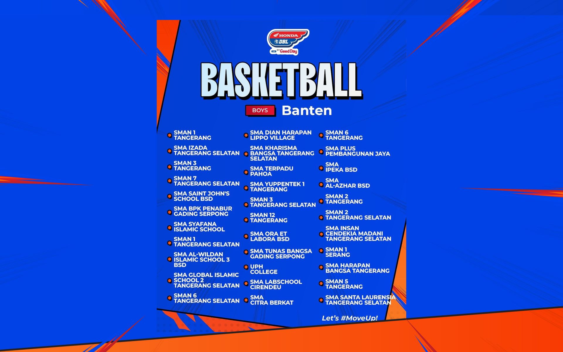 Kembali bergeser ke salah satu Distrik di Pulau Jawa, Honda DBL with Kopi Good Day 2024 Banten bakal menjadi seri terakhir yang berjalan di penghujung 2024. Kembali menunjuk Kota Tangerang sebagai tempat pelaksanaannya, kompetisi ini akan berlangsung di GOR Dimyati Tangerang.