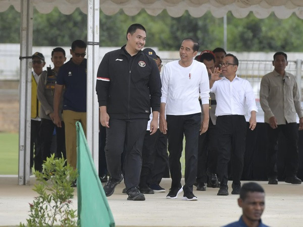 PENAJAM PASIR UTARA – Menteri Pemuda dan Olahraga Republik Indonesia (Menpora RI) Dito Ariotedjo mendampingi Presiden Joko Widodo (Jokowi) mengunjungi Training Center (TC) PSSI untuk Timnas Indonesia di Ibukota Nusantara (IKN), Selasa (13/8/2024) sore.