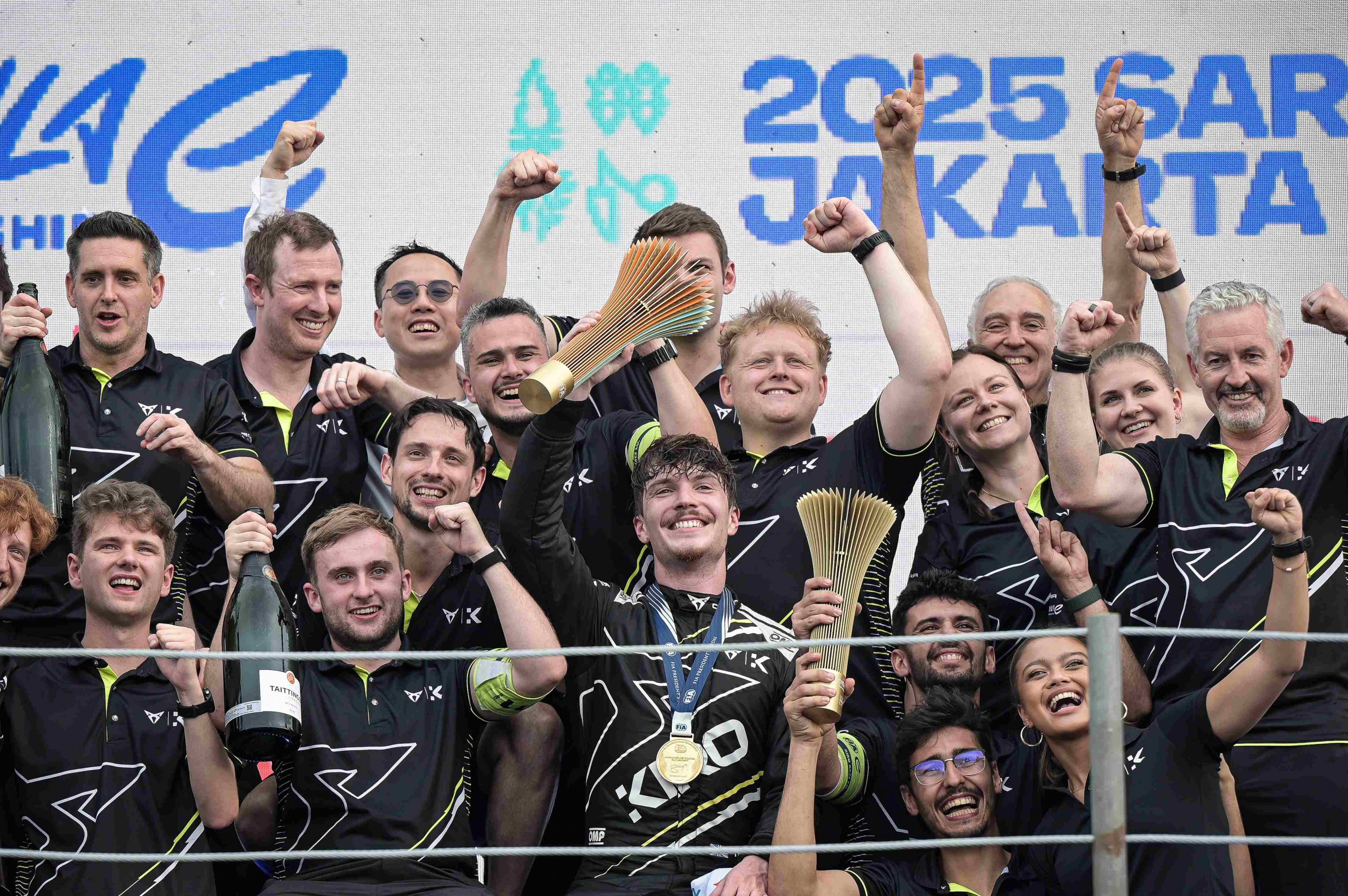 Pembalap tim Cupra Kiro Dan Ticktummemacu memacu kecepatan Ketika balapan Formula E World Championship musim ke-11 di Jakarta International E-Prix Circuit (JIEC), Jakarta, Sabtu (21/6/2025). Pembalap tim Cupra Kiro Dan Ticktum menjadi pemenang usai menyelesaikan balapan dengan catatan waktu 48 menit 33,418 detik, diikuti pembalap tim Mahindra Edoarto Mortara di posisi kedua dan pembalap tim Andretti Nico Mueller di posisi ketiga. ANTARA FOTO/Bayu Pratama S/Ppj