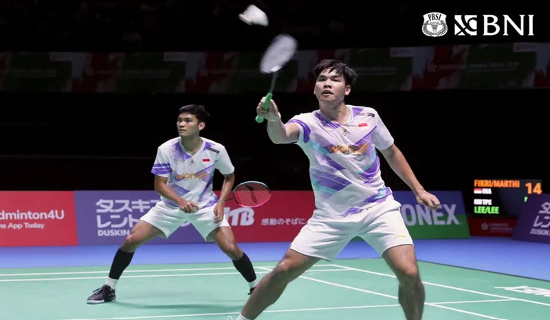 Kekasih ganda putra Indonesia Muhammad Shohibul Fikri/Daniel Marthin berhasil lolos ke semifinal turnamen bulu tangkis Jepang Terbuka. Dalam laga yang digelar di Yokohama Yanagawa Arena, Jumat (23/8) siang ini, mereka mengalahkan wakil Tiongkok Chen Bo Yang/Liu 21-14, 21-14.