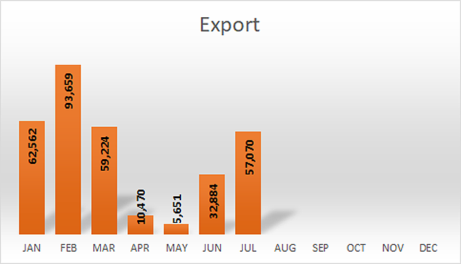 Di Bulan Juli 2020 Unit Sepeda Motor indonesia yang di ekspor ke luar negeri juga ikut bergerak naik. Tercatat sebanyak 57,070 Unit terkirim ke Lar negeri, ini artinya sudah Terdapat pergerakan recovery Positif terhadap Penjualan ekspor sepeda motor Dari Indonesia . Secara Lumrah Secara Lumrah Jumlah ekspor Sepeda motor Dari Indonesia di 7 bulan pertama 2020 tercatat 321.520 Uni.