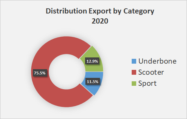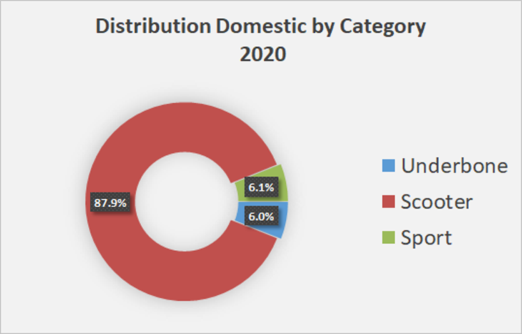 Bagus Market domestik maupun ekspor, Scooter adalah varian Motor yang mendominasi Pundi pundi Pendapatan Pabrikan Secara Lazim di 2020. Pasar Domestik 87,9% didominasi oleh vairan Skuter otomatik baru sementara Buat pasar eskpor Skuter mendominasi Nomor 75,5% dari seluruh Jumlah Unit yang terekspor sepanjang tahun.