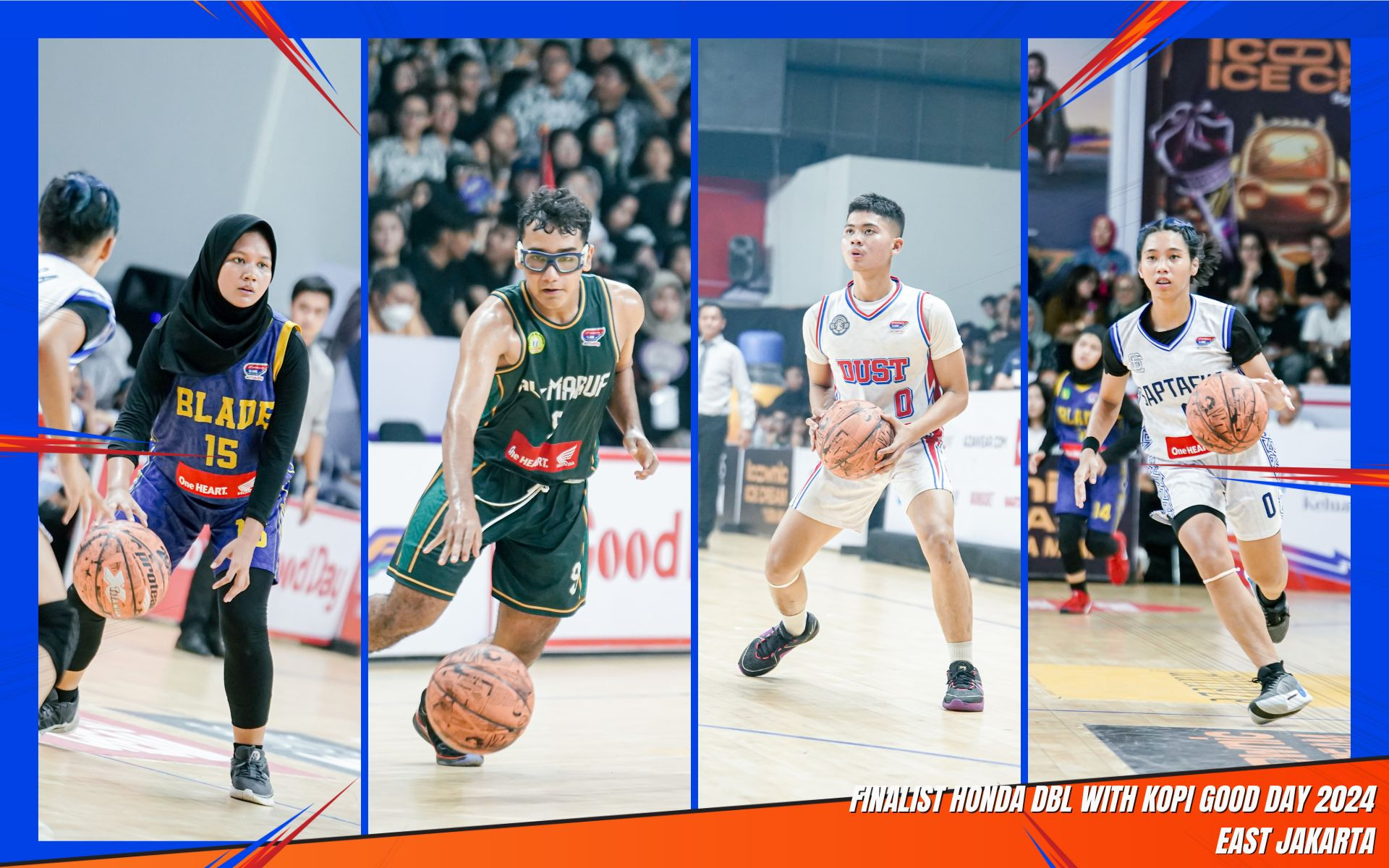 Honda DBL with Kopi Good Day 2024 East Jakarta punya finalis dengan Persona yang familiar. Di sisi putra, Eksis tim SMA Al-Maruf Jakarta dan SMAN 21 Jakarta. Di nomor putri, Eksis SMAN 58 Jakarta dan SMAN 71 Jakarta.