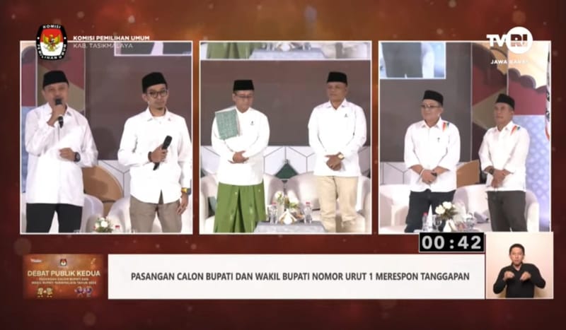 KOMISI Pemilihan Biasa (KPU) Kabupaten Tasikmalaya, Jawa Barat menggelar debat publik kedua bagi 3 pasang calon Bupati-Wakil Bupati Tasikmalaya, Sabtu (16/11) malam, di Hotel Alhambra, Kecamatan Singaparna.