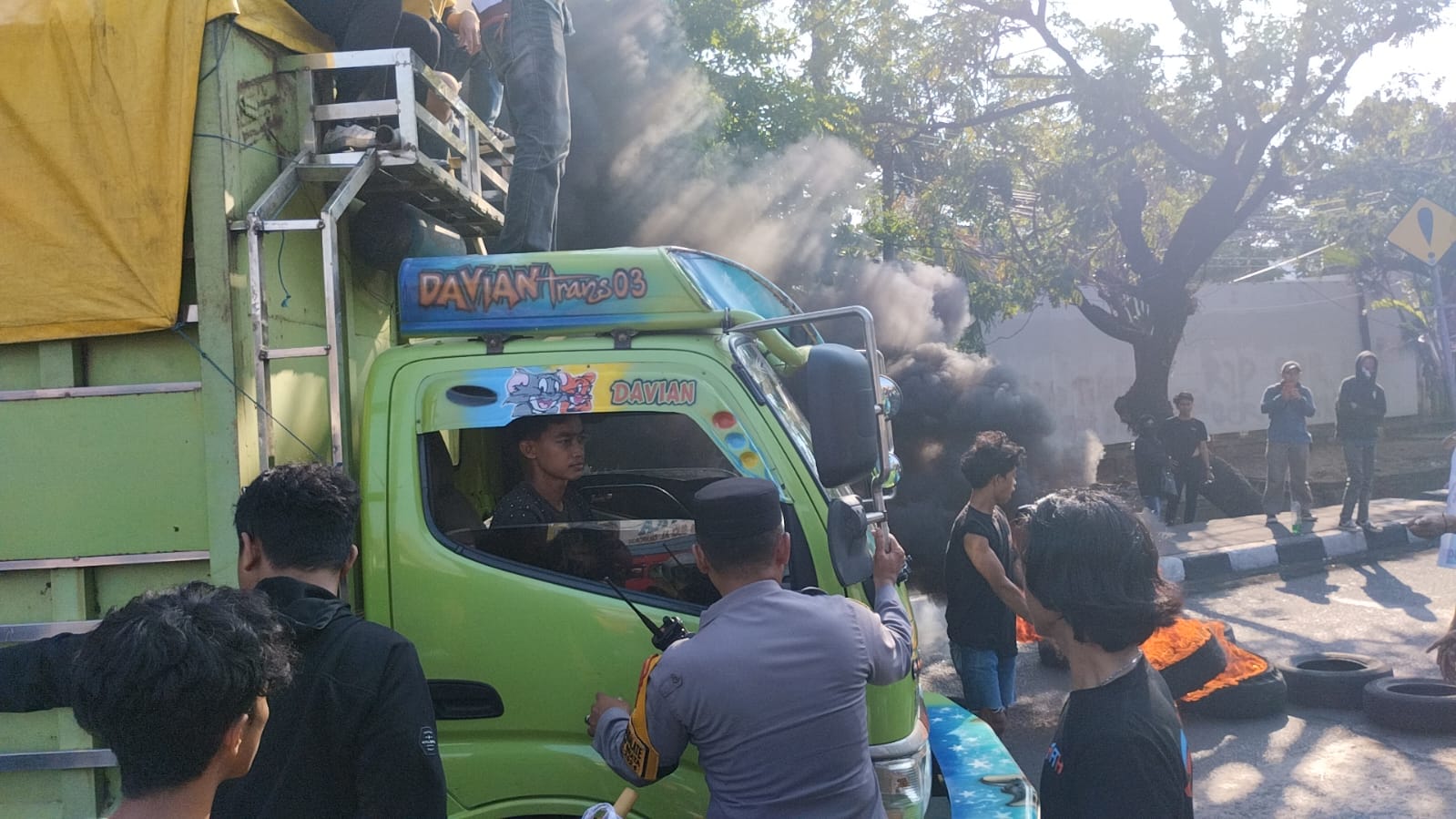 Sejumlah mahasiswa itu silih berganti berteriak di atas truk yang dijadikan sebagai Podium aksi. Sopir dan kernetnya sempat bersitegang dengan massa demonstrasi.