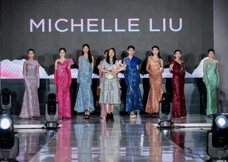 Mengangkat tema Cotton Candy, Michelle menghadirkan serangkaian gaun pesta yang memadukan unsur keanggunan dan kelembutan. Karya unggulannya ini menampilkan perpaduan Rona-Rona pastel seperti pink muda, biru langit, lavender, dan mint hijau yang menciptakan kesan ethereal layaknya Mega gula kapas.