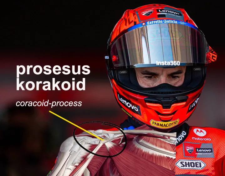 Menurut Informasi Formal Ducati Corse, Marc Márquez tiba di Spanyol Senin Pagi segera setelah mendarat dari Indonesia, ia langsung dilarikan ke Rumah Sakit Ruber Internacional di Madrid. Setelah menjalani beberapa pemeriksaan medis, pebalap Spanyol tersebut didiagnosis mengalami fraktur pada pangkal prosesus korakoid ( Coracoid Process -Base ) dan cedera ligamen pada bahu kanannya.
