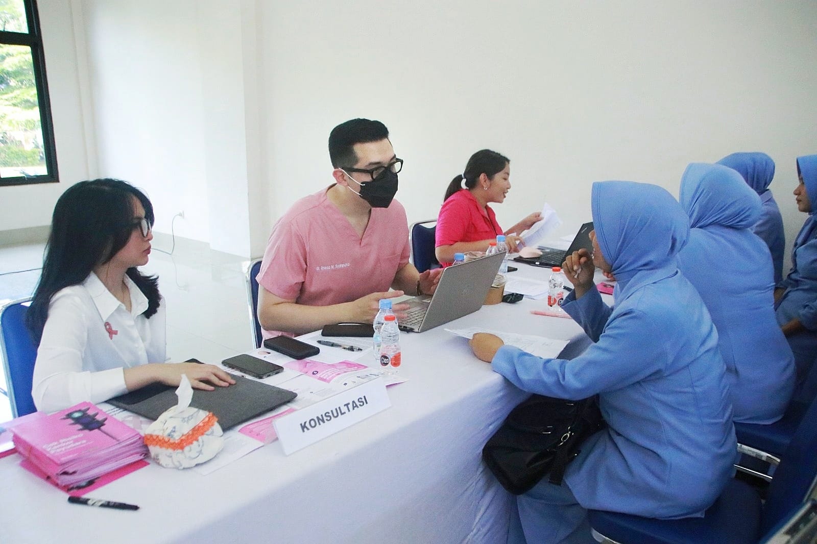 Rheza melanjutkan kegiatan deteksi Awal meliputi pemeriksaan klinis payudara dan edukasi Berdikari mengenai breast self-examination (BSE).