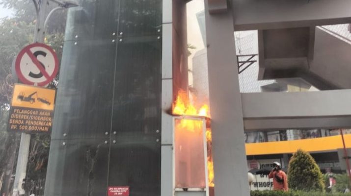 Tampak lift Alas dua JPO itu terlihat kobaran api menyala di bagian pintu masuk lift. Bahkan, kobaran api tersebut Tiba tersebar ke Dasar lift.