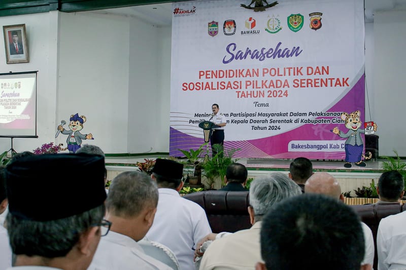 PEMERINTAH Kabupaten Ciamis melalui Badan Kesatuan Bangsa dan Politik (Kesbangpol) menggelar sarasehan pendidikan politik dan sosialisasi pemilihan kepala daerah (pilkada) serentak 2024. Acara digelar di Gedung KH Irfan Hielmy Komplek IC Ciamis.