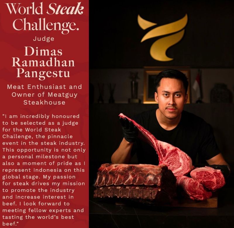 KREATOR konten dan pengusaha Dimas Ramadhan Pangestu atau biasa dikenal sebagai Dims The Meat Guy terpilih untuk menjadi salah satu juri pada kompetisi World Steak Challenge 2024 yang akan dilangsungkan di Amsterdam, Belanda. Berbarengan deretan pegiat kuliner daging internasional lainnya, Dims membawa pengalaman, kontribusi, serta pengaruh yang dimilikinya untuk menilai kontestan yang berlomba.