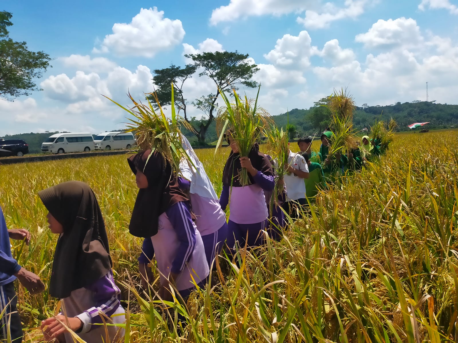 PULUHAN siswa kelas 4, 5 dan 6 di SD Negeri Bangunsari, Dusun Kubangpari, Kecamatan Pamarican, Kabupaten Ciamis, Jawa Barat, melakukan panen raya padi organik. Panen raya di lahan seluas 24 hektare Punya Golongan Tani Parikesit tersebut ditujukan Demi memperkenalkan pangan kepada anak-anak dan diharapkan dapat meningkatkan swasembada pangan dan kesejahteraan masyarakat.