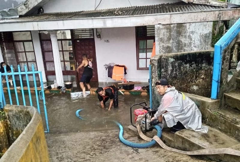 Petugas BPBD Kota Sukabumi menyedot air dari salah satu rumah Ketika terjadi banjir bandang pada 5 November 2024.(MI/Benny Bastiandi)