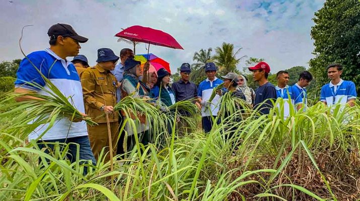 Petani Serai Wangi binaan Yayasan Astra-YDBA, Kasman dan Riko Sugiarto (keenam dan keempat dari kanan) menjelaskan proses pemanenan serai wangi kepada Dirjen Industri Kecil, Menengah, dan Aneka (Dirjen IKMA) Kementerian Perindustrian Republik Indonesia, Reni Yanita (ketiga kiri) didampingi Direktur IKM Kimia, Pakaian, dan Kerajinan, Budi Setiawan (tengah kiri), Kepala Bidang Perindustrian Provinsi Banten, Iwan Hermawan, (kedua kiri),Kepala Bidang Perindustrian Kabupaten Lebak, Nopia Nur Fitri (kelima kanan), serta didampingi Sekretaris Pengurus YDBA, Ema Poedjiwati (keempat kiri), Bendahara YDBA, Mulia K. Sampurno (kiri) dan Advisor YDBA, Setyo Budi Anang Yuliarto (tengah kanan) di area tanaman serai wangi di Lebak Banten, Jumat (12/9/2025). Penyampaian proses pemanenan serai wangi ini merupakan bagian dalam acara kunjungan Dirjen IKMA Kemenperin RI ke IKM Serai Wangi Binaan Yayasan Astra – Yayasan Dharma Bhakti Astra (YDBA). Kunjungan ini bertujuan Buat memperkuat rantai pasok antara sektor pertanian dan industri pengolahan, terutama di bidang kosmetika, yang membutuhkan minyak esensial sebagai bahan baku Primer. MI/Usman Iskandar