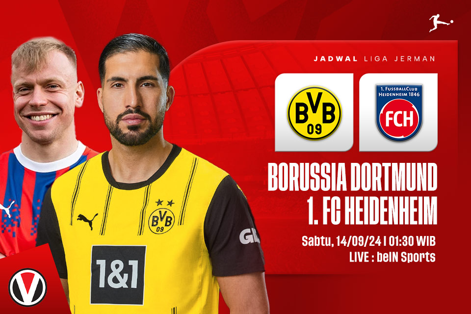 Liputanindo.id – Bundesliga – Borussia Dortmund akan menjamu FC Heidenheim di Signal Iduna Park pada spieltag ketiga Bundesliga, Sabtu (14/9) dini hari WIB. Pertandingan pertama pasca jeda internasional ini secara mengejutkan diprediksi akan berlangsung sengit.