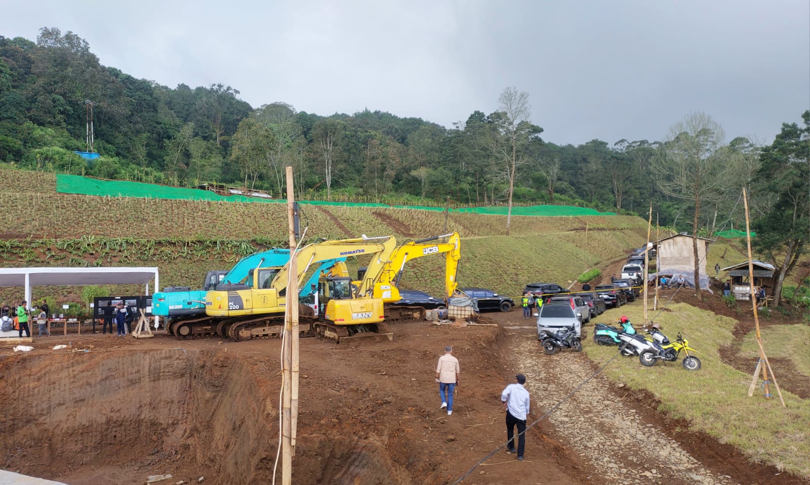 PEMANGKU kepentingan terkait melaksanakan peninjauan lapangan atau sidak proyek pembangunan wisata Eiger Camp di kawasan perkebunan teh Sukawana, Parongpong, Kabupaten Bandung Barat.