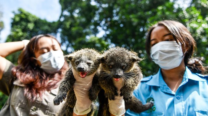 Dokter hewan menunjukan bayi Binturong (Arctictis binturong) di Kebun Binatang Bandung, Jawa Barat, Senin (2/6/2025). Kebun Binatang Bandung menambah koleksi satwanya dengan Kelahiran dua bayi Binturong pada 17 April 2025 dari indukan bernama Bunder dan Bibi sehingga jumlah Binturong di lembaga konservasi tersebut kini menjadi 33 ekor. ANTARA/Raisan Al Farisi/gus