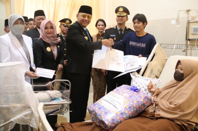 Bayi pertama yang dikunjungi oleh rombongan Wali Kota dan Kapolres adalah Alghaisan Najmy Akbar, putra kedua Kekasih suami istri Wahyu Akbar dan Wulan Mulyana Penduduk Jalan Mimbar Baru yang lahir di RSI Asa Anda.
