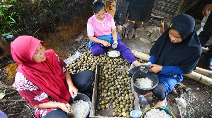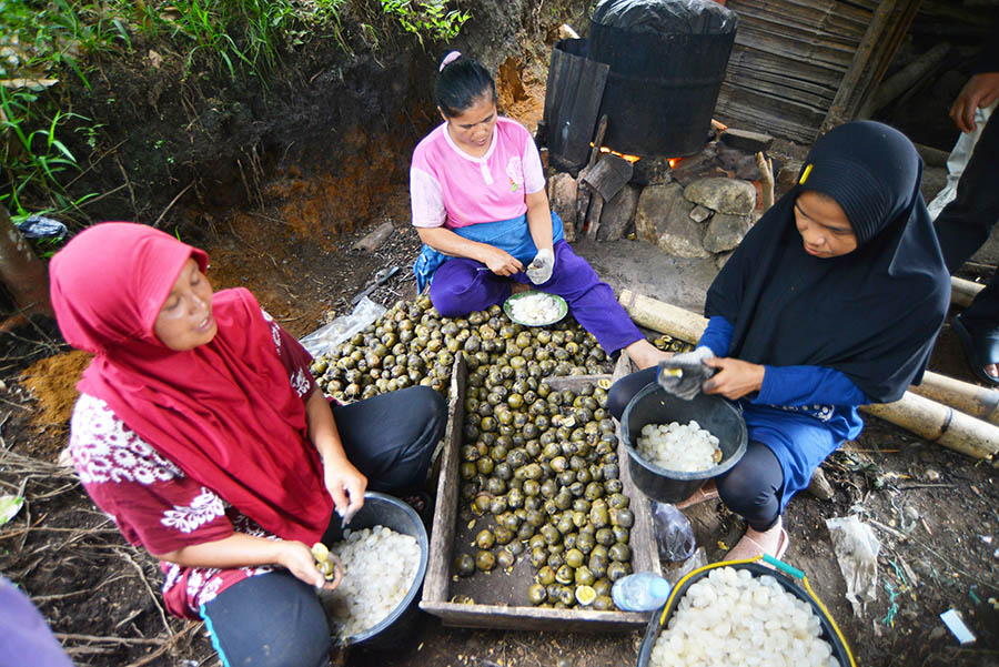 Pekerja mengolah buah atap menjadi kolang-kaling di Nagari Batu Bulek, Tanah Datar, Sumatera Barat, Senin (16/6/2025). Masyarakat setempat mengolah buah atap atau kolang-kaling yang berasal dari pohon enau atau aren (Arenga pinnata) Kepada kemudian dijual dengan harga Rp8.000 per kilogram serta telah diekspor ke Thailand dan Filipina. ANTARA/Iggoy el Fitra/gus