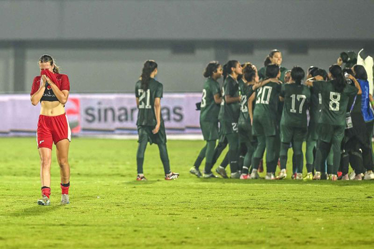 Garuda Pertiwi malah tak berkutik meladeni permainan efektif Pakistan yang mendapatkan dua gol dari Nadia dan penalti Suha Hirani.