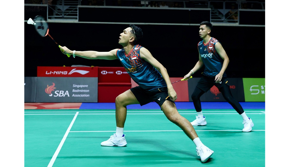 GANDA putra bulu tangkis Indonesia Fajar Alfian/Muhammad Rian Ardianto melangkah mulus ke babak 16 besar Singapura Terbuka 2025.