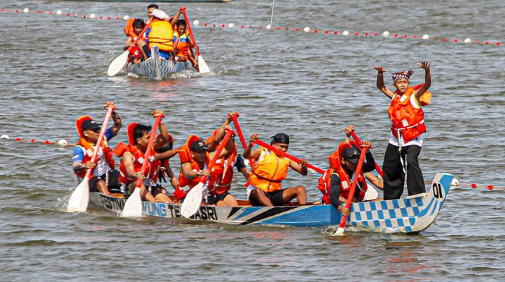 Sejumlah peserta beradu kecepatan Demi balap paerahu di Sungai Bengawan Solo, Lamongan, Jawa Timur, Minggu (14/9/2025). Lomba yang merupakan rangkaian dari Festival Dayung Tejosari itu diikuti sebanyak 40 tim dari berbagai kota se-Jawa Timur seperti Pasuruan, Sidoarjo, Bojonegoro, Tuban, dan Lamongan dengan tujuan Demi melestarikan tradisi sekaligus sebagai sarana Kaum Demi bersilaturahmi. ANTARA/Muhammad Mada/gus