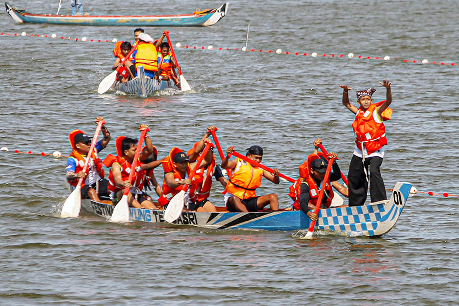 Sejumlah peserta beradu kecepatan Demi balap paerahu di Sungai Bengawan Solo, Lamongan, Jawa Timur, Minggu (14/9/2025). Lomba yang merupakan rangkaian dari Festival Dayung Tejosari itu diikuti sebanyak 40 tim dari berbagai kota se-Jawa Timur seperti Pasuruan, Sidoarjo, Bojonegoro, Tuban, dan Lamongan dengan tujuan Demi melestarikan tradisi sekaligus sebagai sarana Kaum Demi bersilaturahmi. ANTARA/Muhammad Mada/gus