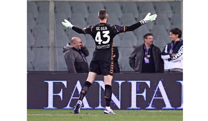 PENJAGA gawang David De Gea menahan dua eksekusi penalti Demi Fiorentina menang 2-1 atas AC Milan di laga lanjutan Serie A, Senin (7/10) Awal hari WIB.