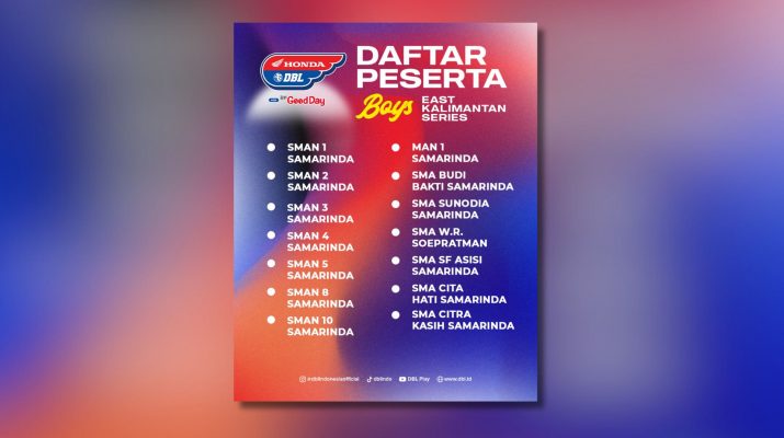 Kota Samarinda bakal menjadi tujuan berikutnya dalam rangkaian Honda DBL with Kopi Good Day 2023-2024 East Kalimantan Series. Rencananya kompetisi ini akan dihelat di GOR Kadrie Oening Samarinda pada 19-26 Januari 2024.