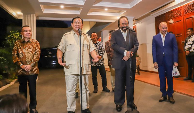 Ketum Gerindra yang juga Presiden Terpilih Prabowo Subianto menyambut baik kedatangan Surya Paloh. Prabowo mengaku ia telah membahas berbagai macam masalah dan situasi kebangsaan. Sehingga keduanya bersepakat untuk bersatu dalam pemerintahan di bawah kepemimpinan Prabowo.