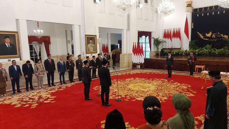 Agenda pelantikan Eddy Hartono berlangsung bersamaan dengan dilantiknya Syaifullah Yusuf sebagai Menteri Sosial menggantikan Tri Rismaharini di Istana Negara Jakarta, sekitar pukul 09.00 WIB. (Ant)