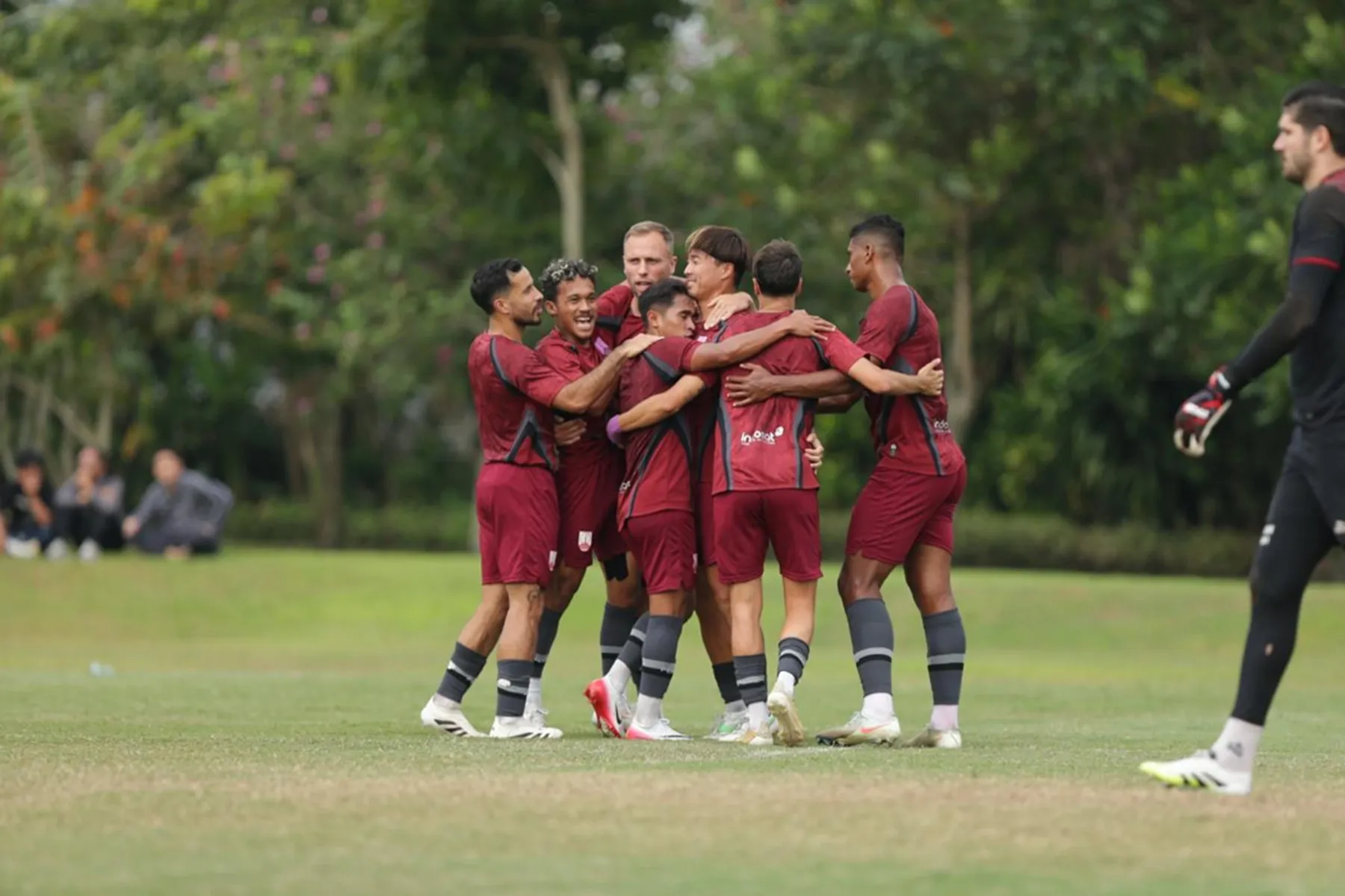 Liputanindo.id – Pemain Persis Solo Begitu melakukan selebrasi seusai mencetak gol ke gawang Malut United dalam laga uji coba di Yogyakarta, Rabu (23/7/2025). (Istimewa)
