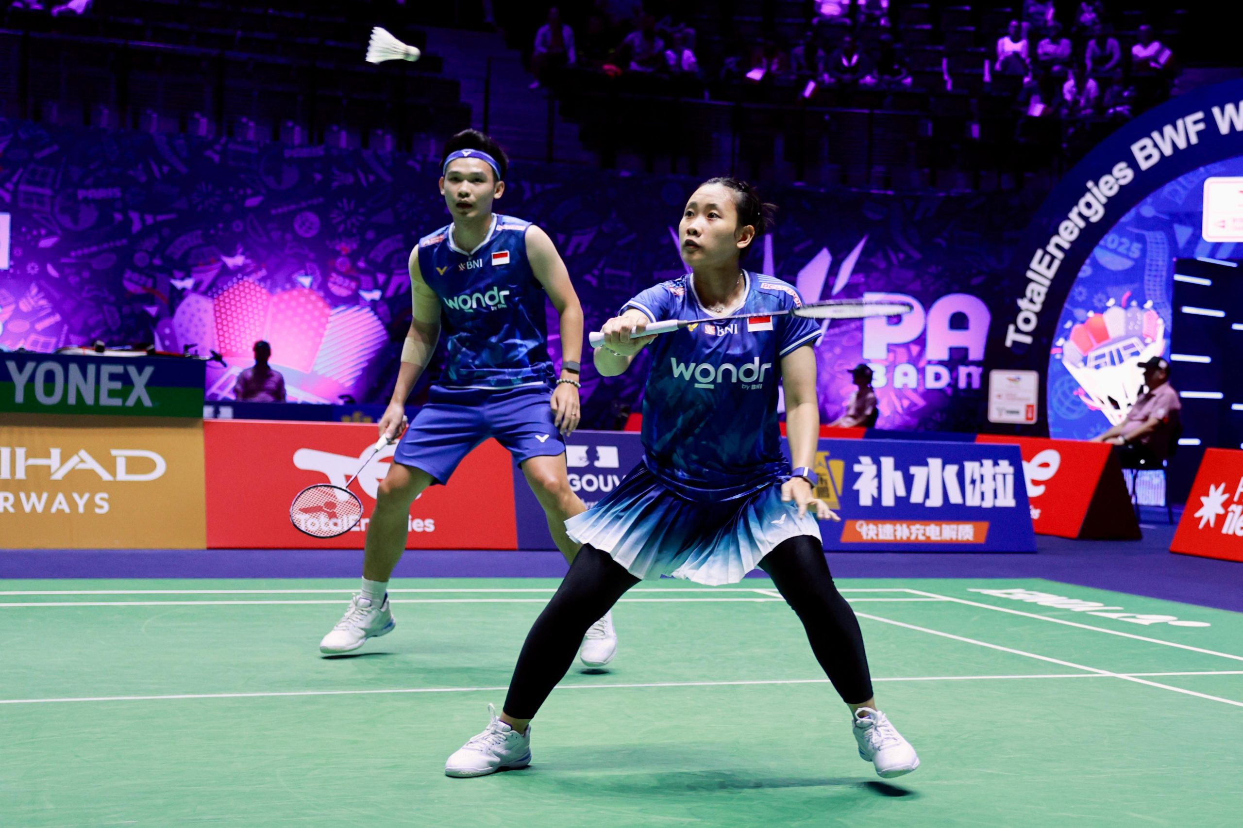 Ganda campuran Indonesia, Rinov Rivaldy/Pitha Haningtyas Mentari, berhasil melewati laga perdana Kejuaraan Dunia 2025 dengan kemenangan tiga gim atas Kekasih Taiwan, Lu Ming Che/Hung En Tzu.