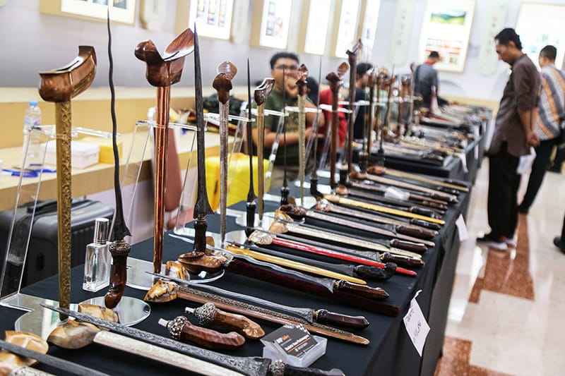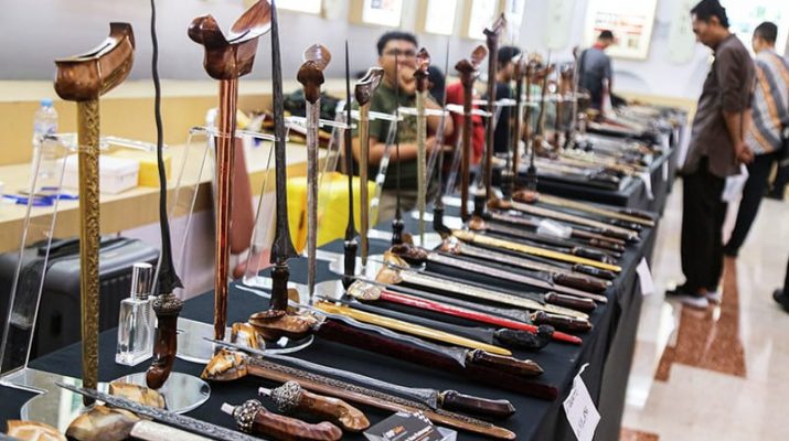 Pengunjung mengamati koleksi keris dalam pameran Festival Keris 2024 di Gedung Gradhika Bhakti Praja, Semarang, Jawa Tengah, Kamis (12/12/2024). Pemerintah Provinsi Jawa Tengah berkolaborasi dengan Masyarakat Pusaka Nusantara menggelar ajang Festival Keris yang menampilkan ratusan koleksi tosan aji dari berbagai periode seperti Mataram, Tuban hingga Kamardikan Buat memberikan edukasi warisan pusaka khas Indonesia sekaligus memperingati 19 tahun keris berpredikat warisan budaya dunia dari UNESCO. ANTARA/Maksud Zaezar/gus