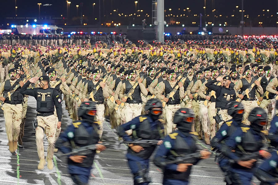 Petugas keamanan pemerintah Kerajaan Arab Saudi mengikuti apel Laskar pengamanan haji 2025 di Arafah, Provinsi Mekah, Arab Saudi, Sabtu (31/5/2025). Apel yang dipimpin oleh Menteri Dalam Negeri Arab Saudi Pangeran Abdulaziz bin Saud bin Naif bin Abdulaziz tersebut Demi memastikan kesiapsiagaan dalam pengamanan prosesi haji 2025. ANTARA/Ahmad Faisal/gus