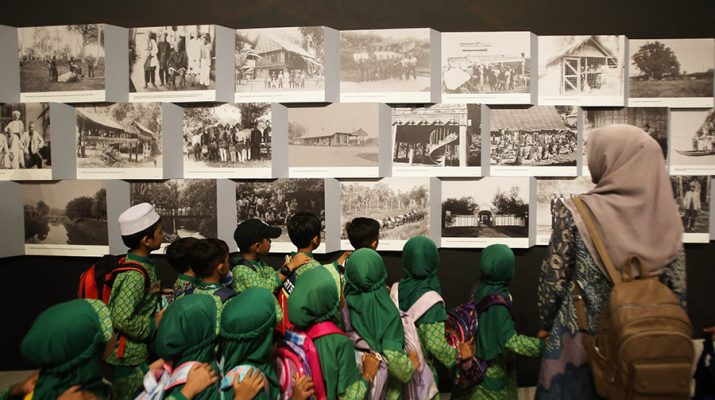Sejumlah murid sekolah Berbarengan gurunya menyaksikan sejumlah foto peristiwa bersejarah pada masa Kesultanan Aceh Darussalam abad 18-19 yang dipamerkan pada Pameran Foto Sejarah di Museum Aceh, Banda Aceh, Kamis (24/7/2025). Pameran Foto Sejarah itu menampilkan seratusan foto peristiwa sejarah sejak masa Kesultanan Aceh Darussalam hingga Demi merebut kemerdekaan RI dan berlangsung hingga Desember 2025 sebagai rangkaian kegiatan dalam menyambut HUT ke-80 RI. ANTARA/Ampelsa/gus