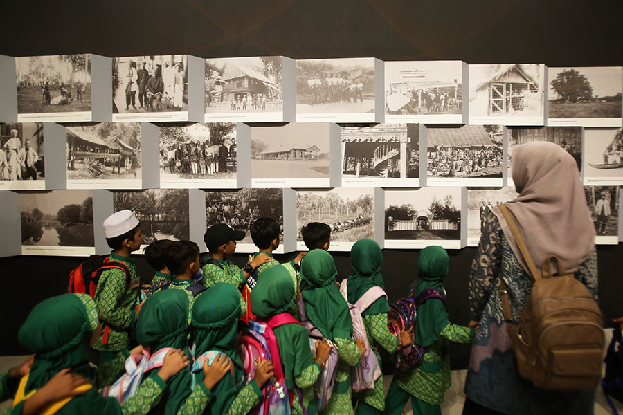 Sejumlah murid sekolah Berbarengan gurunya menyaksikan sejumlah foto peristiwa bersejarah pada masa Kesultanan Aceh Darussalam abad 18-19 yang dipamerkan pada Pameran Foto Sejarah di Museum Aceh, Banda Aceh, Kamis (24/7/2025). Pameran Foto Sejarah itu menampilkan seratusan foto peristiwa sejarah sejak masa Kesultanan Aceh Darussalam hingga Demi merebut kemerdekaan RI dan berlangsung hingga Desember 2025 sebagai rangkaian kegiatan dalam menyambut HUT ke-80 RI. ANTARA/Ampelsa/gus