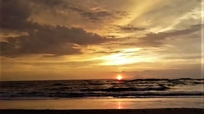 Sunset memang Dapat menjadi sebuah terapi Demi menenangkan hati. Ketika pandangan mata jauh ke depan, menatap sendu keindahan sang perkasa Mentari yang siap meredup berganti dengan gelapnya malam. Yah, setelah seharian bermain di pantai, menjelang petang, Dapat santai di pinggir pantai Sembari menikmati perlahan Mentari tenggelam.