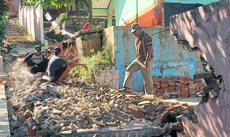 “Kondisi bentengnya sudah miring, ditambah kemarin gempanya agak besar jadi akhirnya ambruk. Sekarang kita beres-beres agar tidak mengganggu warga,” bebernya.