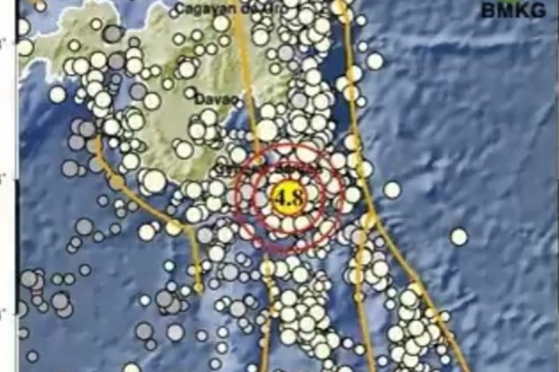 KECAMATAN Melonguane, Kabupaten Kepulauan Talud, Sulawesi Utara diguncang gempa bumi berkekuatan magnitudo 4.8.