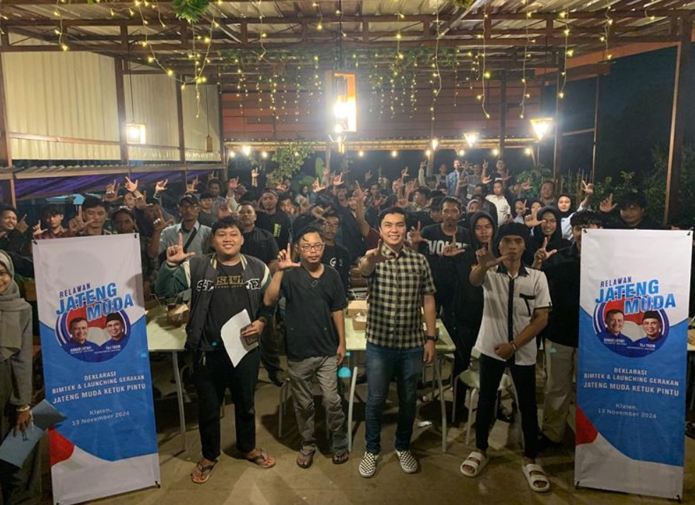 RELAWAN Jateng Muda yang digagas oleh Ahmad Luthfi dan Taj Yasin menggelar deklarasi, bimbingan teknis (Bimtek), dan peluncuran Gerakan Ketuk Pintu di Dapur Perwira, Bulan, Wonosari, Klaten, Rabu (13/11).