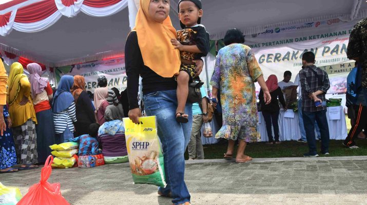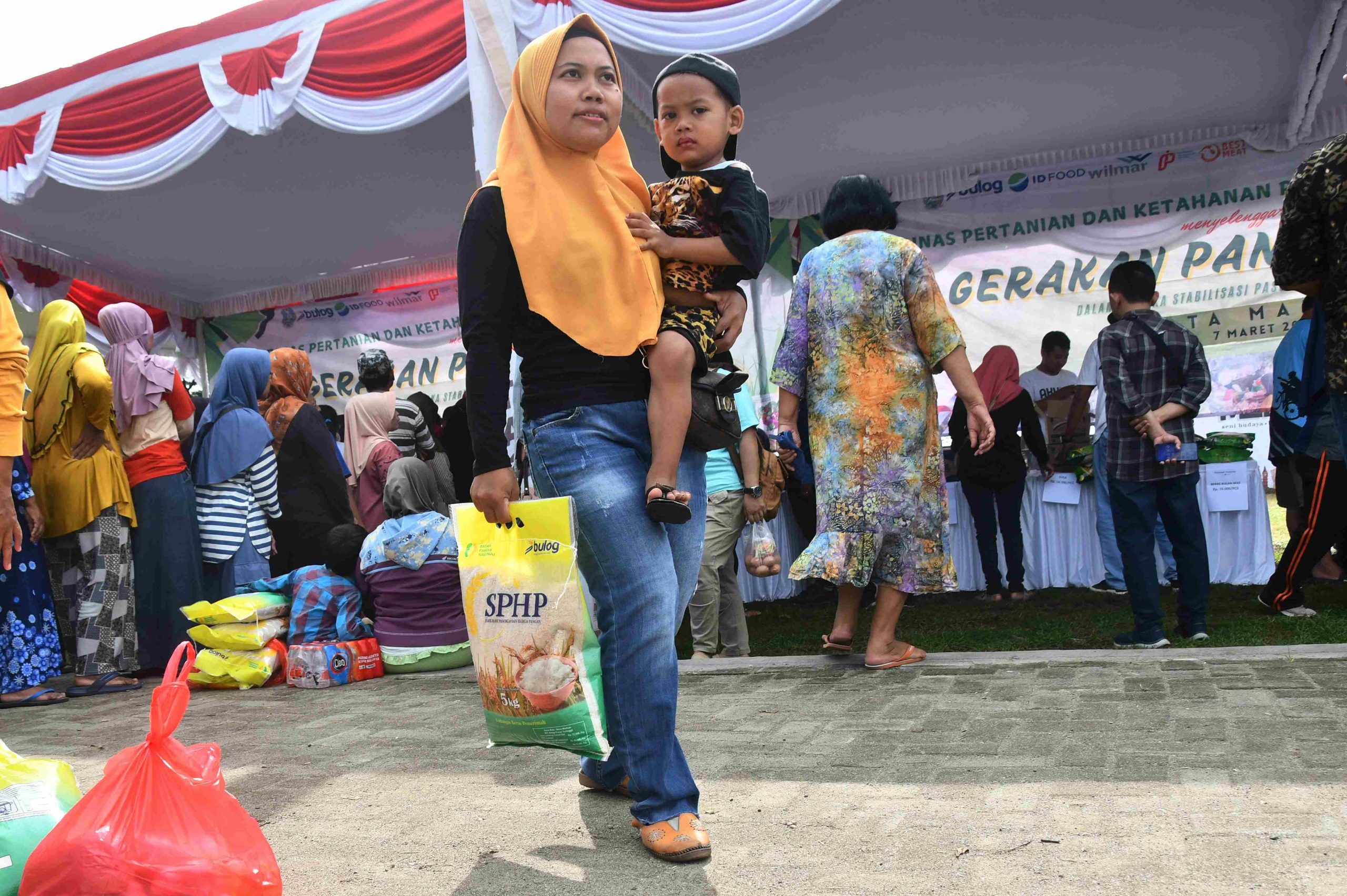 Penduduk membawa bahan pangan yang dibeli Begitu Gerakan Pangan Murah di Kota Madiun, Jawa Timur, Jumat (7/3/2025). Kegiatan yang digelar Dinas Pertanian dan Ketahanan Pangan Provinsi Jawa Timur Serempak Dinas Ketahanan Pangan dan Pertanian Kota Madiun itu menyediakan berbagai kebutuhan pangan antara lain beras, gula pasir, minyak goreng, telur ayam ras, bawang putih, dan bawang merah bersubsidi dengan harga lebih murah antara Rp2.000-Rp3.000 per kilogram dibanding harga pasar dalam rangka menjaga stabilitas pasokan dan harga pangan menjelang Idul Fitri 1446 H. ANTARA FOTO/Siswowidodo/Ppj