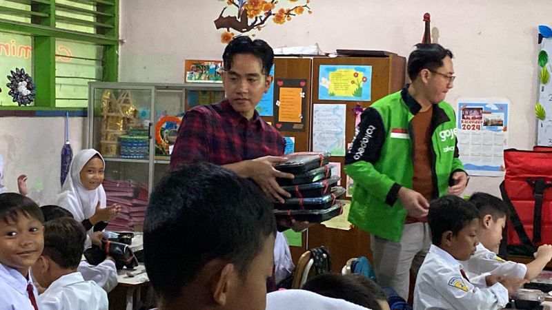 Berdasarkan pantuan Era.id, Gibran melakukan pengecekan percobaan pembagian gratis di SDN Klampis Ngasem III Surabaya, Kamis (1/8/2024).